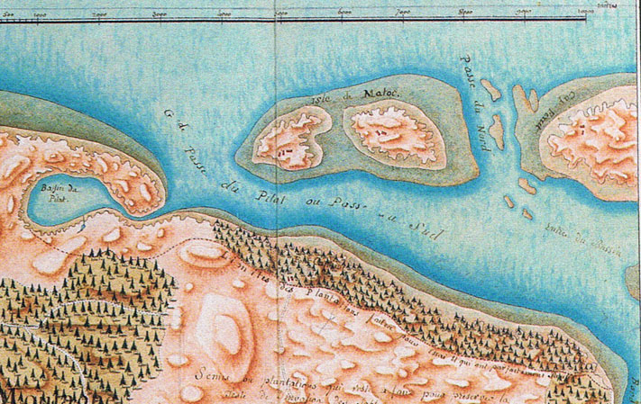 La deuxième en 1835. En 9 ans, l'ouverture des passes s'est inversée du Sud vers le Nord, rompant le Banc de Matoc sur sa partie Nord.
